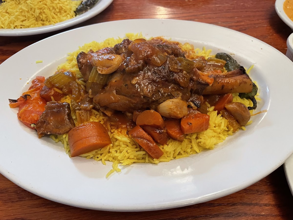 Four of us enjoyed a takeout dinner from the Hummus House recently. The interior of the restaurant is nothing to write home about, but don't let that fool you. The food is excellent. They offer a wide range of different hummus variations. Our favorites were the roasted red pepper, the artichoke, and the jalapeno cilantro. The braised lamb shank was tender and flavorful. The beef shawarma and kafta kabob were nicely seasoned, and the chicken kabobs had a nice char on the outside but were still tender and juicy on the inside. We also had the fried chicken, which is not always available. On this evening, it was. Lucky for us - because it was crispy and beautifully seasoned. Yum. All of the food had a wonderful aroma. Prices were fair and portion sizes were generous.